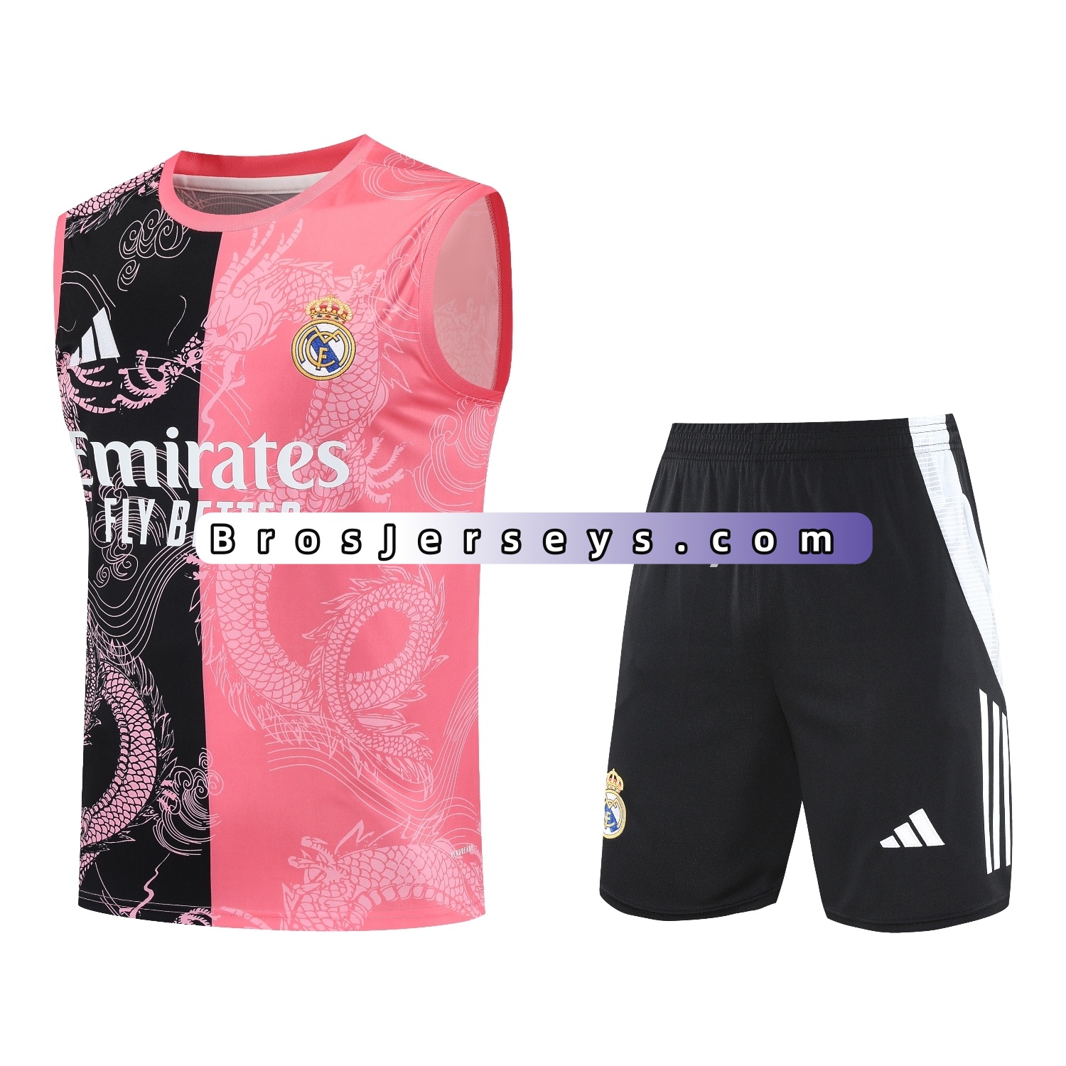 • Real Madrid 25-26 Vest Training Set - Pink-Black Dragon Vest & Black-White Shorts