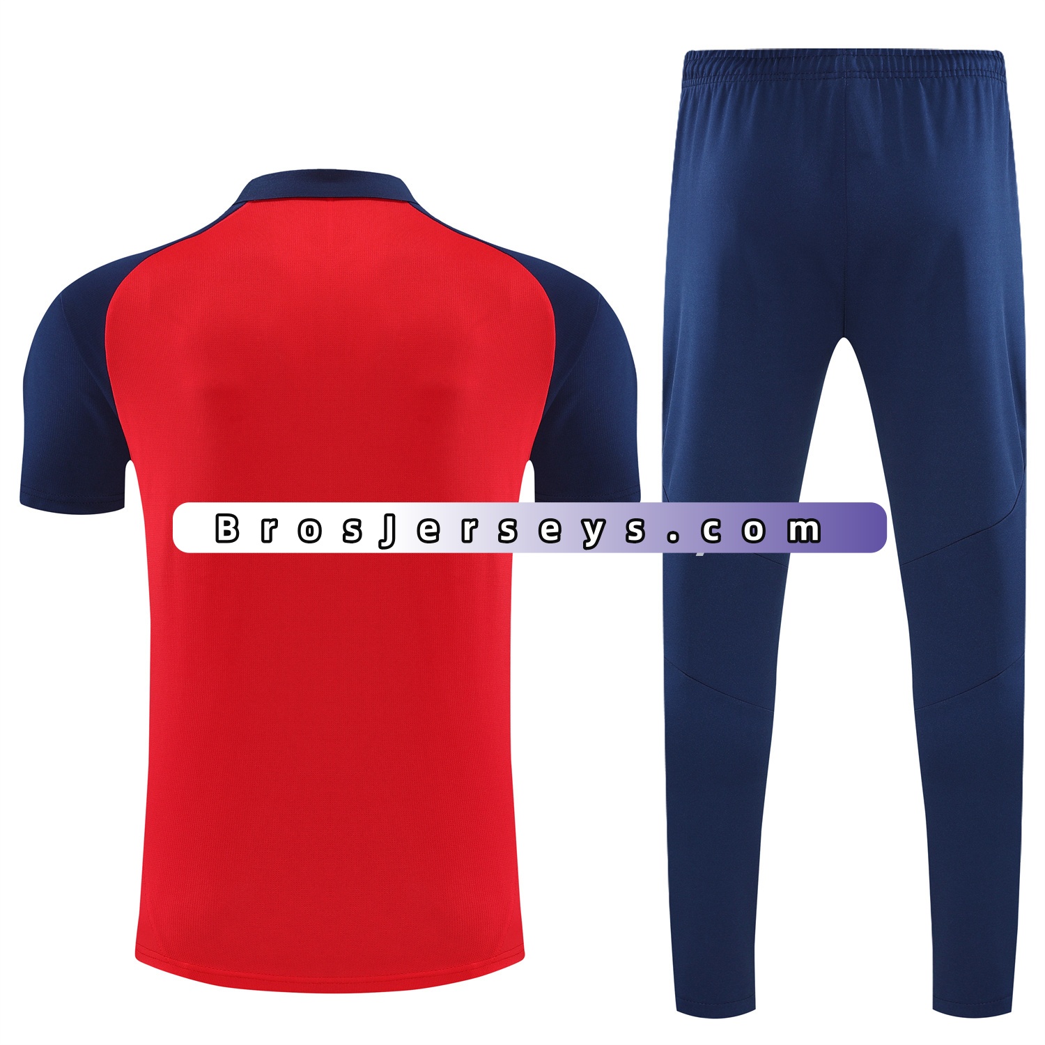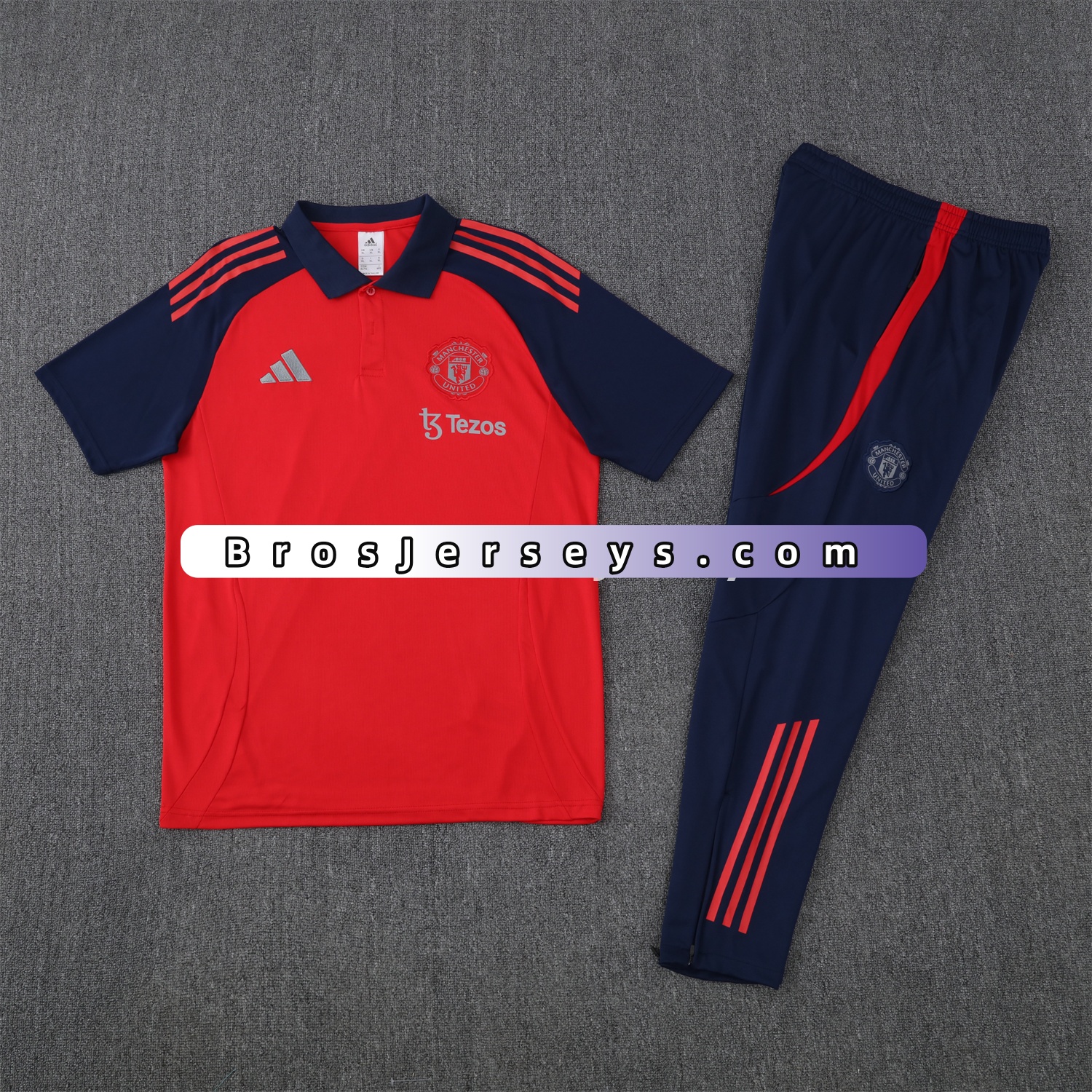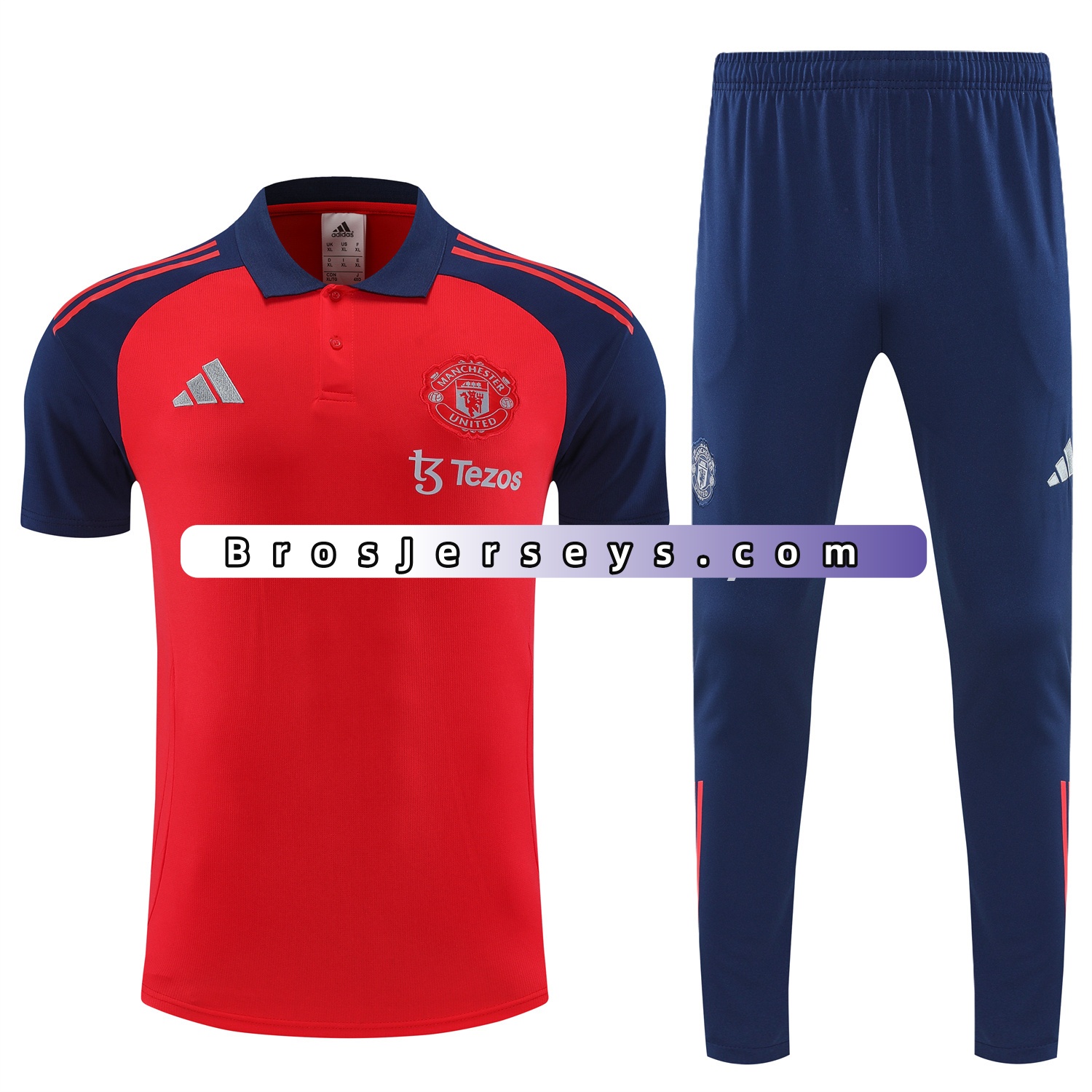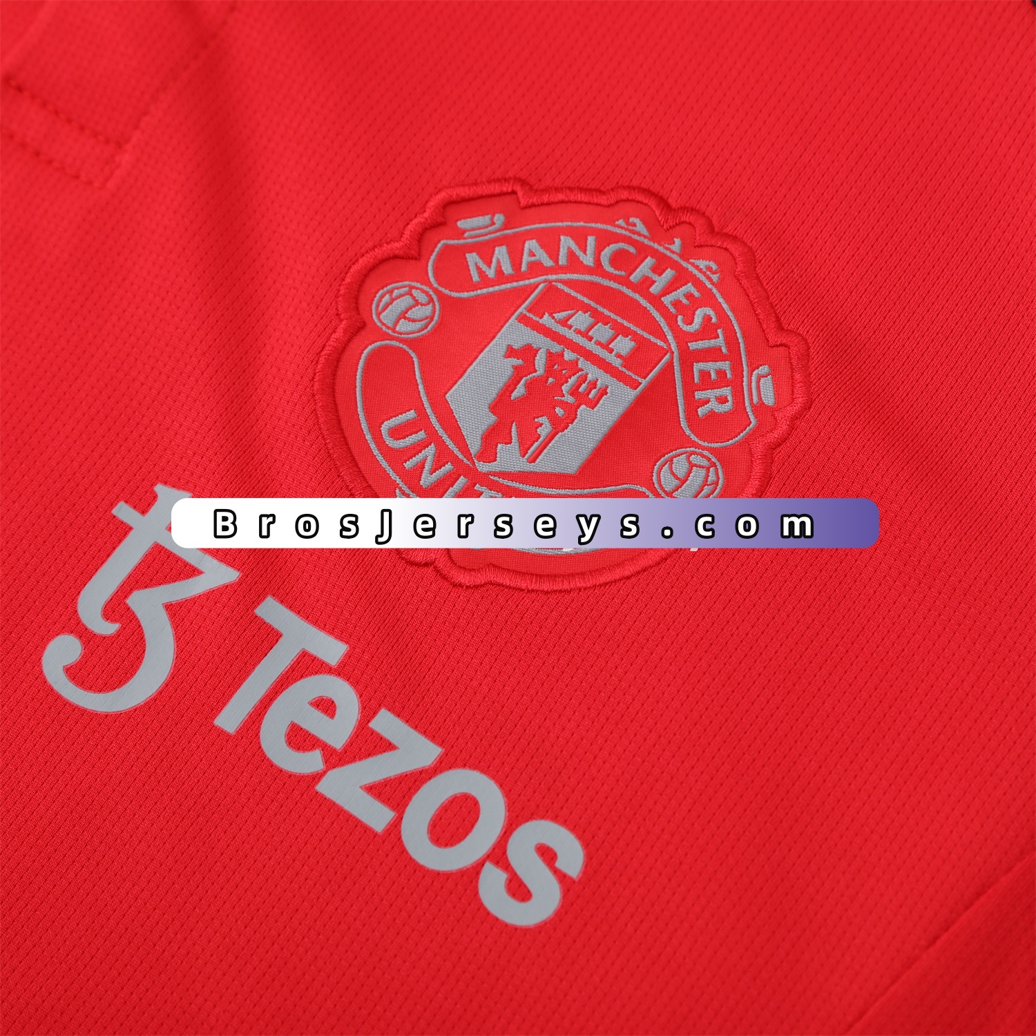 Manchester United 25-26 POLO Short-Sleeve Training Set - Red Top and Deep Blue Pants