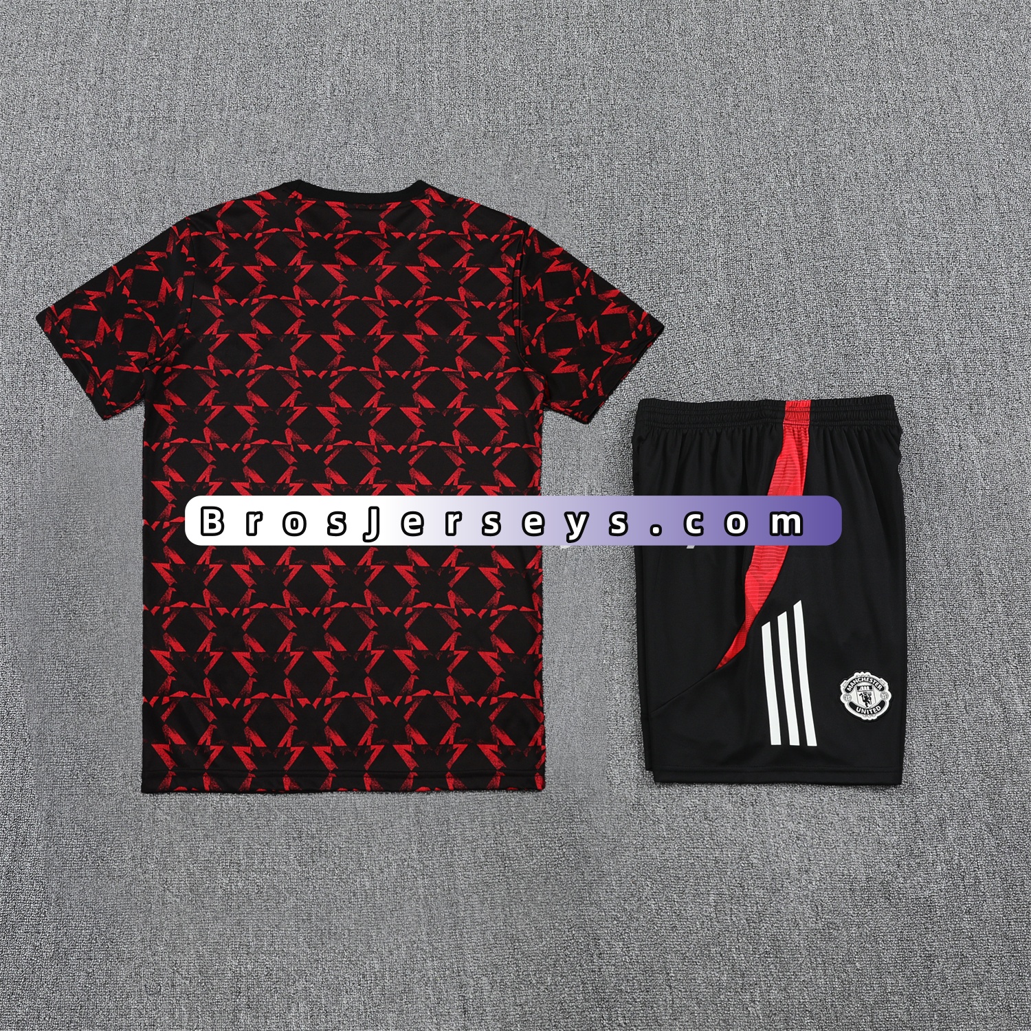 Manchester United 25-26 Pre-Match Short-Sleeve Training Set - Red Top & Black Shorts
